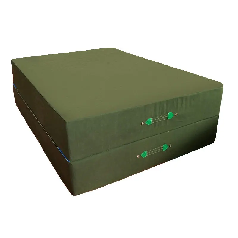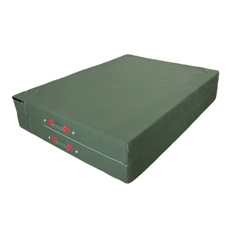 Size: 200 * 100 * 10CM. This is a standard size. Material: Inner layer is pearl cotton. Pearl cotton is soft and elastic. Outer layer is canvas. Canvas is strong and durable. Color: Green. Other colors are available on request. Shape: Rectangular. Weight: Lightweight for easy handling. The mat is foldable for storage. It saves space when not in use. The materials are eco-friendly. They meet safety standards.