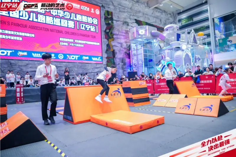 On the tracks of CCFA "The Art of Movement" and CCPA National Youth Parkour Tour events, every orange-and-black module—every cushioned slope, step, and technical obstacle—carries the same label: XOT.